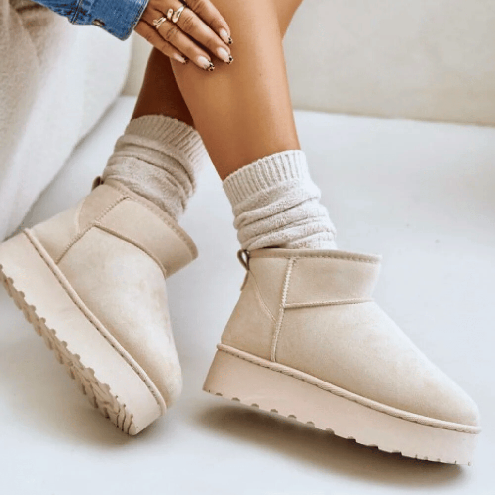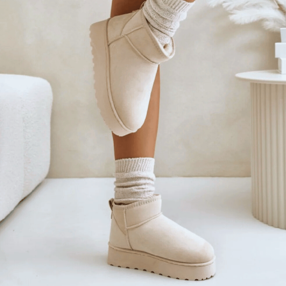 LUXEMBURG Bot ile kışa şık bir adım atın! Bu özenle tasarlanmış botlar, dış kısmındaki zarif süet dokusu ve içindeki yumuşak kürküyle hem şıklık hem de maksimum sıcaklık sağlar. Trend kalın tabanıyla günümüz modasına uyum sağlarken, aynı zamanda kaymaz yapısı sayesinde en zorlu kış koşullarında güvenle yürümenize olanak tanır.